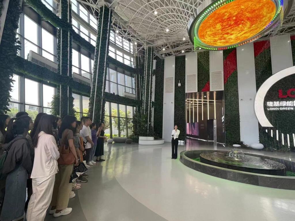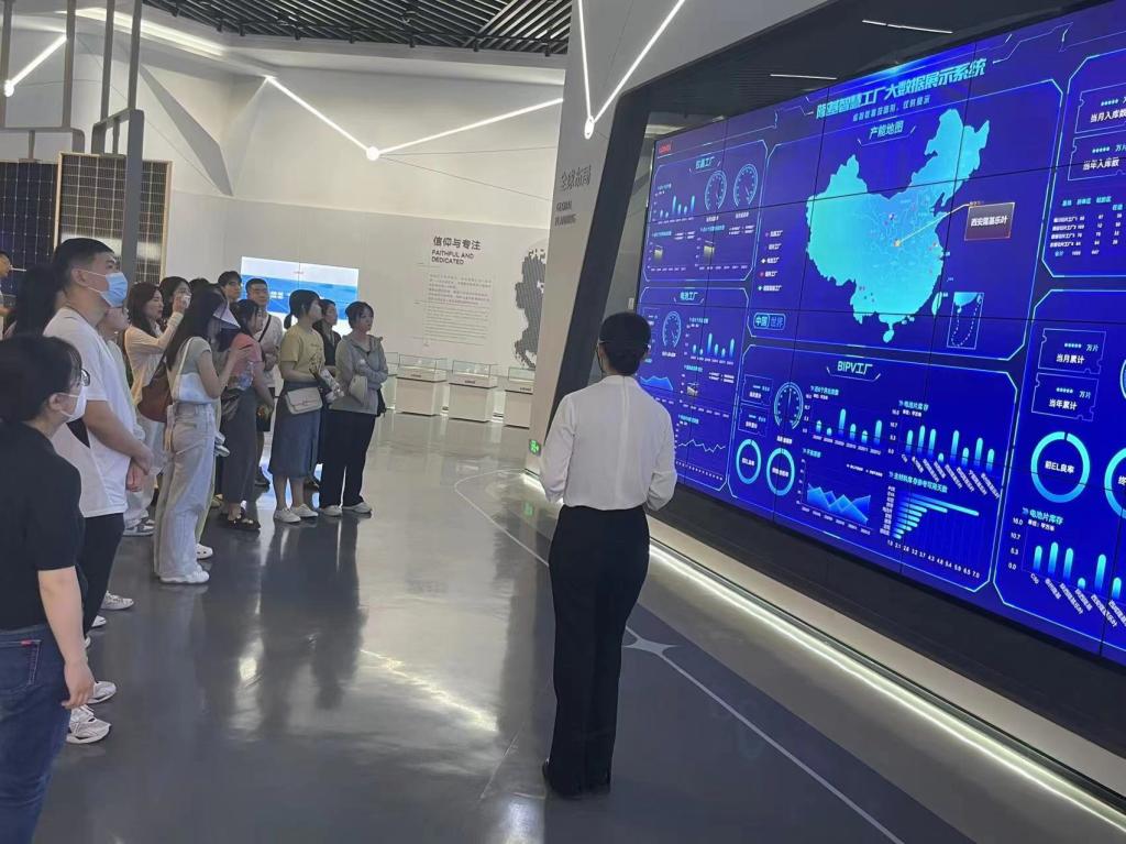 6月10日下午,马贵梅副教授带领公司2022级MPAcc研究生,走进西安市隆基绿能智慧能源展览馆,开展第二课堂教学。隆基绿能智慧能源展览馆位于西安市未央区尚苑路隆基绿能总部园区内,2021年5月27日正式启用。2022年,隆基绿能智慧能源展览馆被正式认定为“陕西省科普教育基地”,利用企业特色优势科技资源,面向社会宣传新能源科普知识,承担科技实践培训。展览馆主打光伏主题,在这里不仅可以零距离触及能源的过去、现在和未来,还可详细了解隆基股份的发展史,纵览光伏行业变革的历史。同学们在这里参观了向“阳”而生、21世纪能源亟需“进化”、隆基洞察时代的智慧、光伏驱动智能星球等展厅。公司派专人为到访师生介绍了公司文化及发展历程,同学们了解到光伏产业最新技术信息。