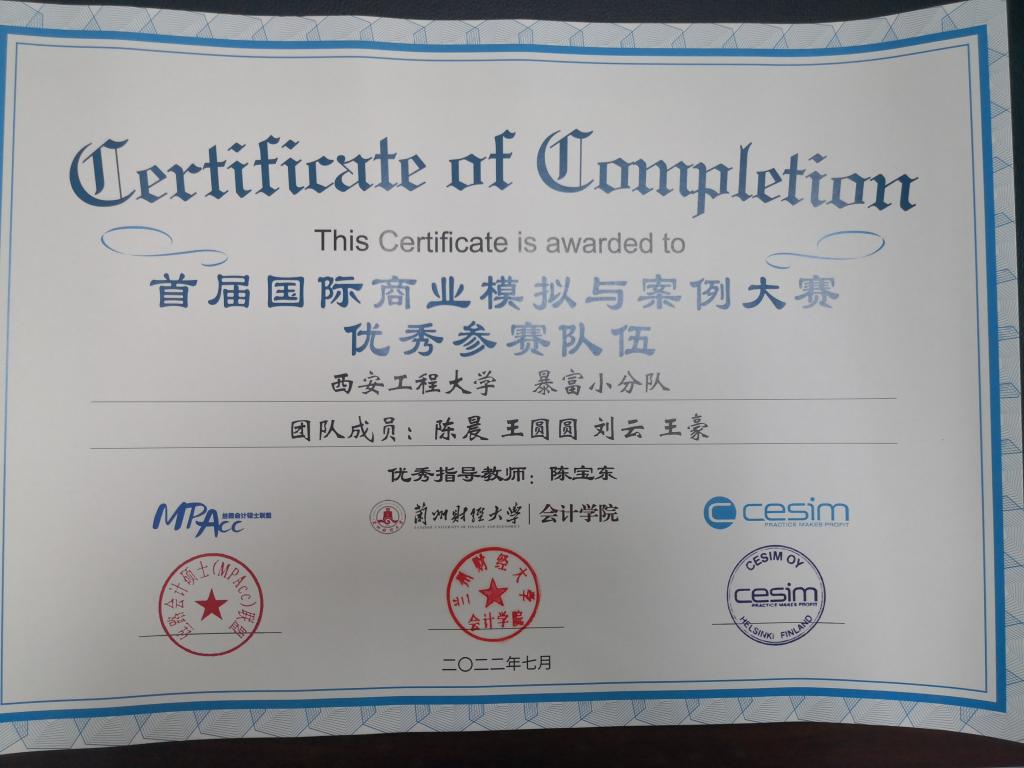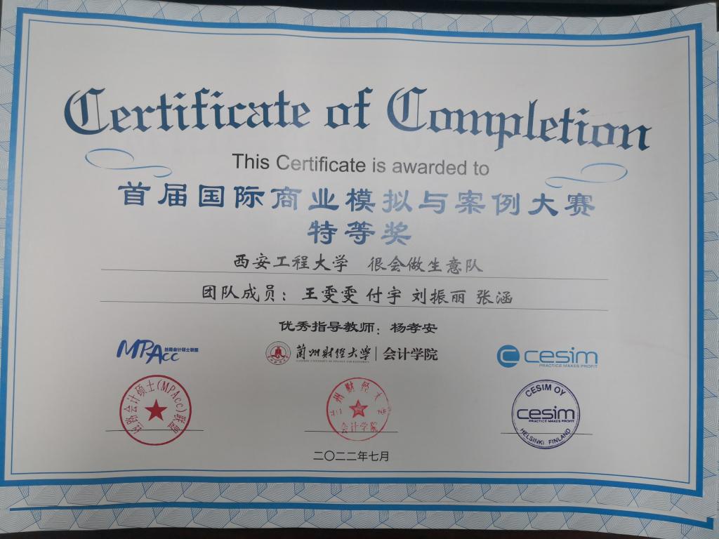 丝路会计硕士(MPAcc)联盟第二届年会于2022年7月23日在兰州召开,联盟发起的首届国际商业模拟与案例大赛当日落下帷幕。威廉体育williamhill“很会做生意队”在本次大赛中荣获特等奖,同时取得2023年“CESIM Elite”国际赛的参赛资格;“暴富小分队”获优秀奖。