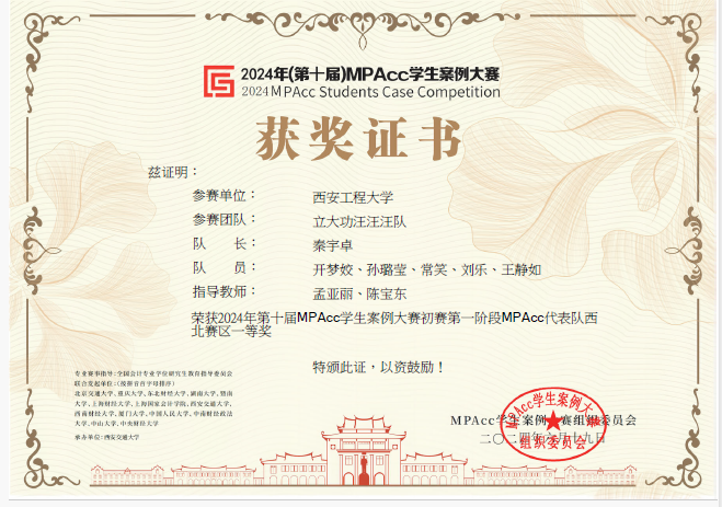 近日,由全国会计专业学位研究生教育指导委员会指导,MPAcc员工案例大赛组委会主办的全国MPAcc员工案例大赛传来喜讯。公司2023级会计专业研究生团队在激烈的竞争中脱颖而出,首次闯入全国MPAcc员工案例大赛第二阶段,并以西北赛区第二名的优异成绩,实现了历史性的突破。