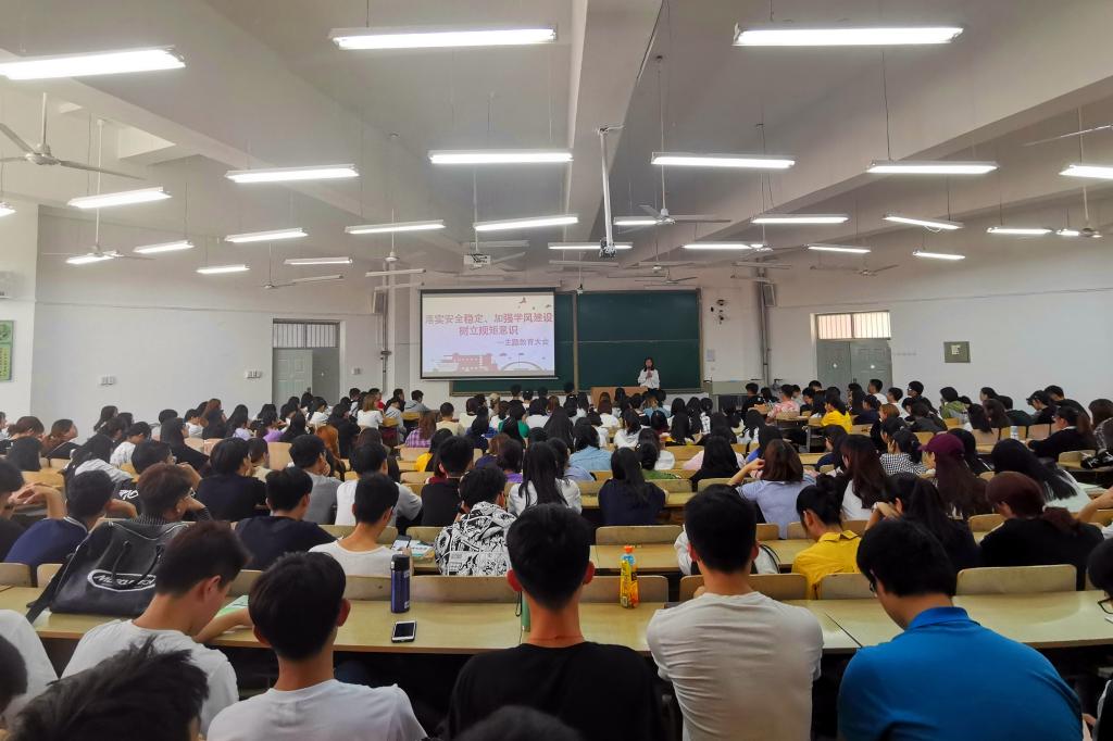 2019年9月29日中午12时,2018级召开“落实安全稳定、加强学风建设、树立规矩意识”主题教育大会,辅导员张妍、王馨可,18级全体员工参加了会议。