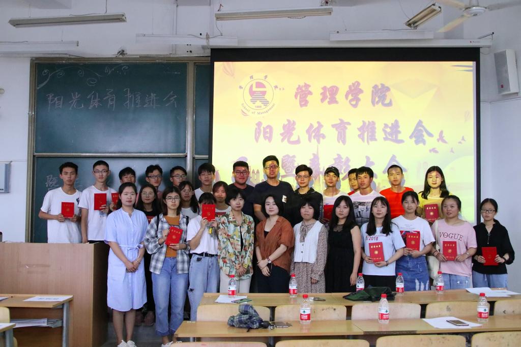 2019年6月24日中午,威廉体育williamhill于B235教室举行了阳光体育推进会暨表彰大会,团总支书记王馨可及17、18级130余名员工参加了本次活动。