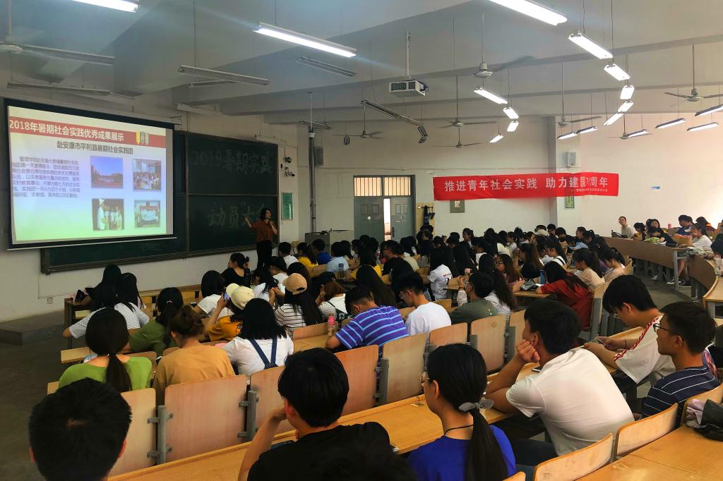 6月12日、14日中午,2019年暑期社会实践动员大会在临潼校区B133教室举行。16、17级的班长、团支书、宿舍长及18级全体员工共600余人参加了此次动员大会。团总支书记王馨可主讲。