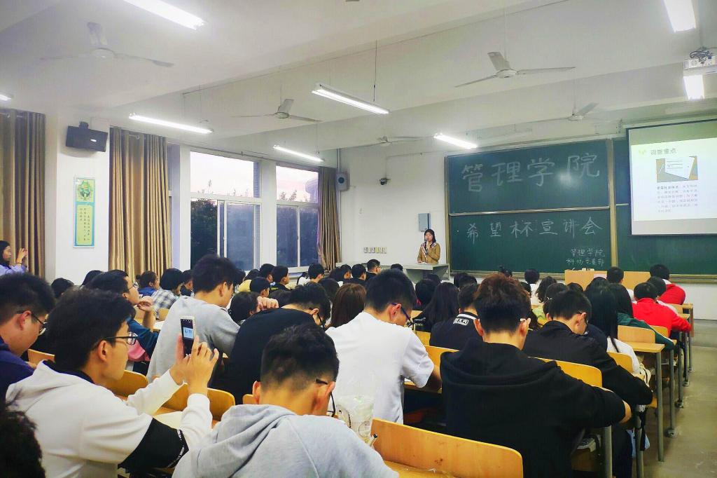 10月10日,威廉体育williamhill在临潼校区A202召开第十一届“希望杯”宣讲会。会议由威廉体育williamhill科协主办,2018级、2017级、2016级各班主要员工干部、团学科主席团成员及往届参赛队伍代表参加了此次活动。本次宣讲会由竞赛部部长16级行政管理专业张思婷主讲。