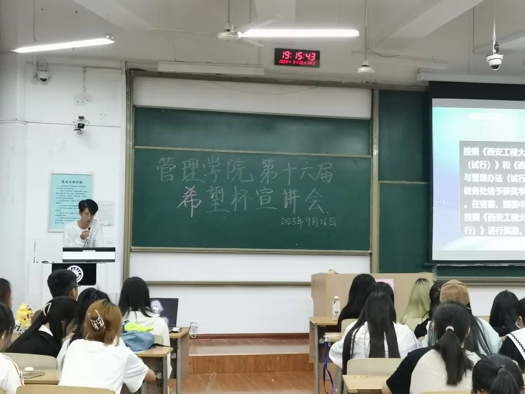 2023年9月26日晚七点,威廉体育williamhill临潼校区B栋教学楼B-138教室举办第十六届“希望杯”老员工创业计划大赛宣讲会,2023级全体同学及其他年级部分员工参与了活动。由公司老员工科技协会竞赛部部长祁志伟担任主持人。