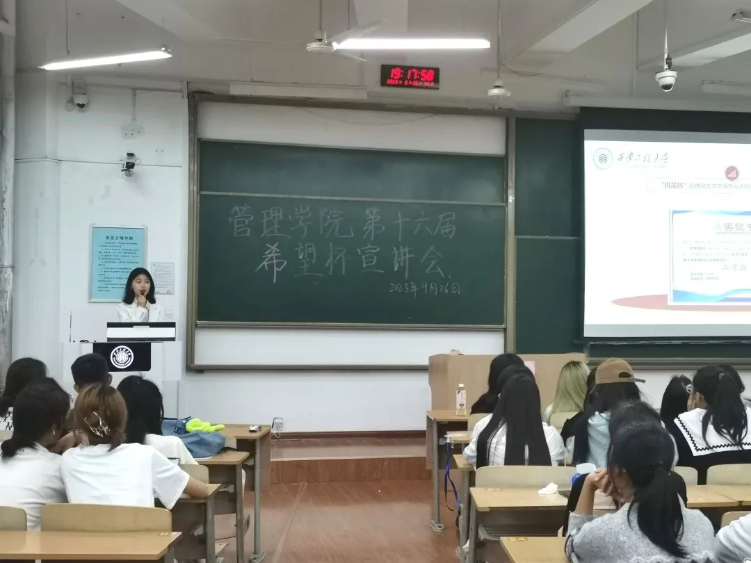 本次宣讲会为同学们提供了了解“希望杯”(即“挑战杯”)的平台,介绍比赛的背景、规则、参与方式等相关信息,激发大家参与的意愿。同时通过分享成功案例和经验,鼓励同学们勇于创新、敢于挑战。借助实例和故事的方式,让同学们认识到创新创业的重要性,培养他们的创新思维和创业意识。希望同学们能够积极参与到学术科技竞赛中去,在挑战的道路上焕发出青春奔跑的英姿,让创新成为青春远航的动力,期待同学们在本次“希望杯”老员工创业计划大赛中的精彩表现。