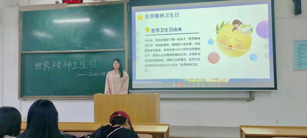 活动期间,公司还开展了新生适应性团体辅导,为本科和硕士新生上好“大学第一课”;公司二级心理辅导站员工团队在教学楼新生自习室为大一新生开展科普讲解,介绍世界精神卫生日的来由,普及老员工常见的心理问题及调节方法;公司组织各班级开展“世界精神卫生日”主题班会,进行心理健康教育普及宣传,累计举办班会24场,提高了同学们对精神卫生知识的认识和理解。