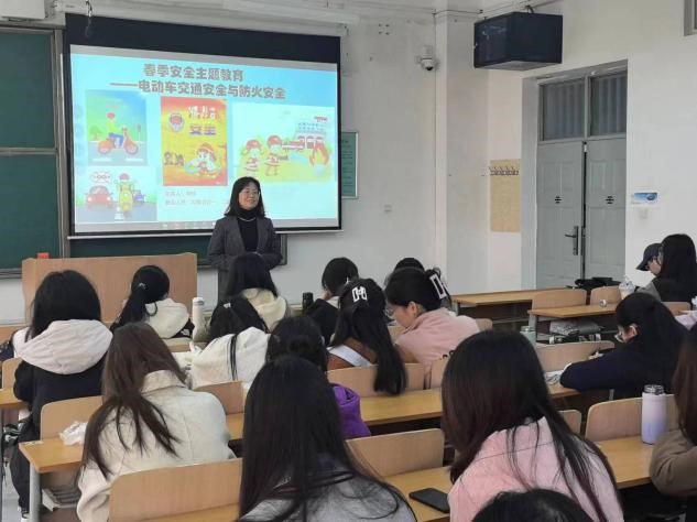 此次班会的主题为“春季安全主题教育——电动车交通安全与防火安全”。会议中,申老师强调了电动车交通安全与防火安全,要求每位同学做到增强自身交通安全意识、安全驾驶、规范充电行为,用实际事故案例带领同学们进行了深度思考,同时,对防火安全知识进行了普及。此外,申老师对于同学们平日的自身安全、财产安全以及防护意识也提出了更高的要求,在外出游玩时,要自觉遵守交通规则,保管好自身财物,时刻保持通讯畅通;在校园内,注意宿舍通风,垃圾及时处理,严防传染病和流行病的发生,禁止在校内从事经商活动;精神层面,要懂得自尊自爱自强,坚持规律作息和科学运动,养成文明健康的生活习惯,增强自我保护能力并对自己的行为负责。