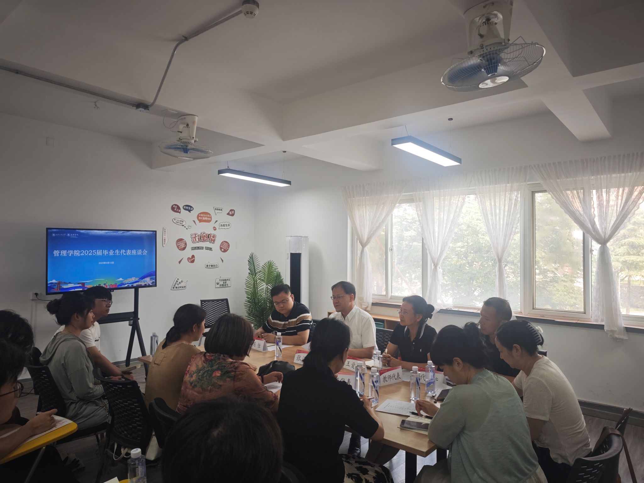 6月12日,威廉体育williamhill在“一站式”员工社区召开2025届毕业生代表座谈会暨学风建设大讨论专题会。联系公司的副董事长张洛红参加会议,与公司领导班子、教师代表、相关辅导员及20余名毕业生代表面对面,围绕成长感悟、学业发展、学风建设等展开讨论,并听取同学们的意见建议。