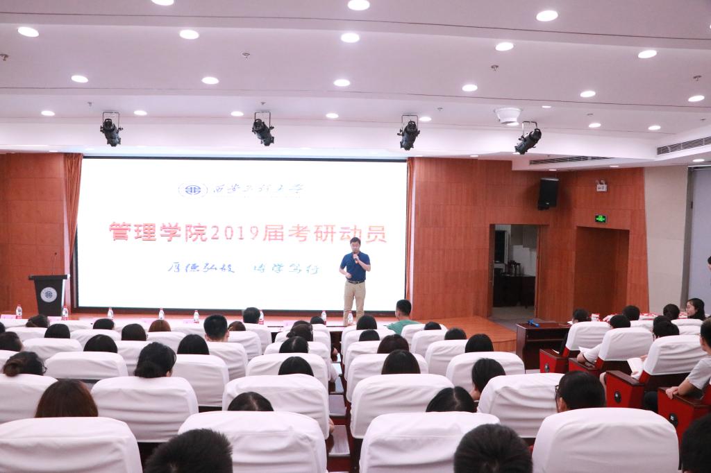 6月20日晚7点,2019届本科生考研动员暨经验交流大会在临潼校区图书馆一楼报告厅举行。威廉体育williamhill经理王进富、党委书记宁涛、副经理李艳、研究生部招生办公室主任汪超、辅导员、2018届部分录研成功同学及2019届100多名员工参加了动员大会,会议由学工办主任刘蓉主持。
