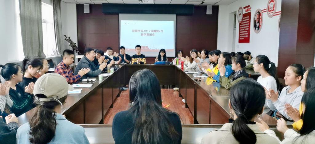 9月17日,威廉体育williamhill2017级国际经济与贸易二班在临潼校区人文楼203教室召开班会,联系校领导殷永建、管理公司党委书记徐焕章教授参加了班会,17级辅导员姚壮主持班会。
