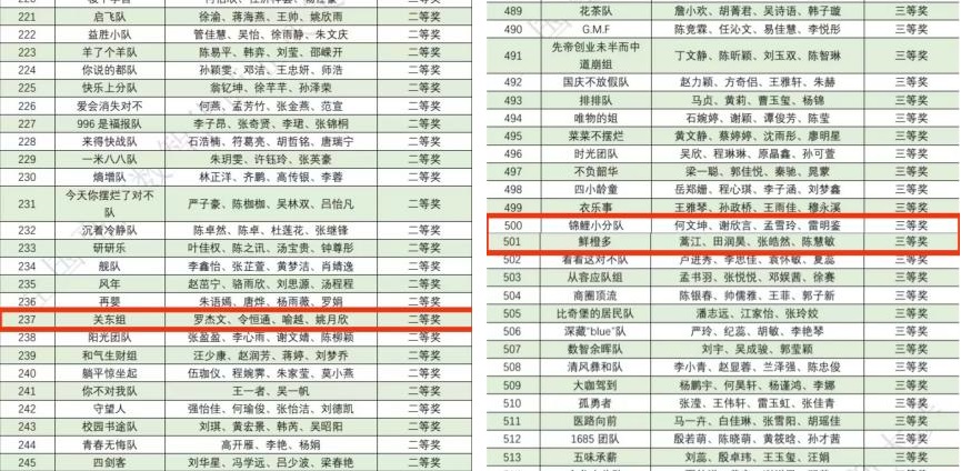 图一 关东组、锦鲤小分队、鲜橙多获奖信息