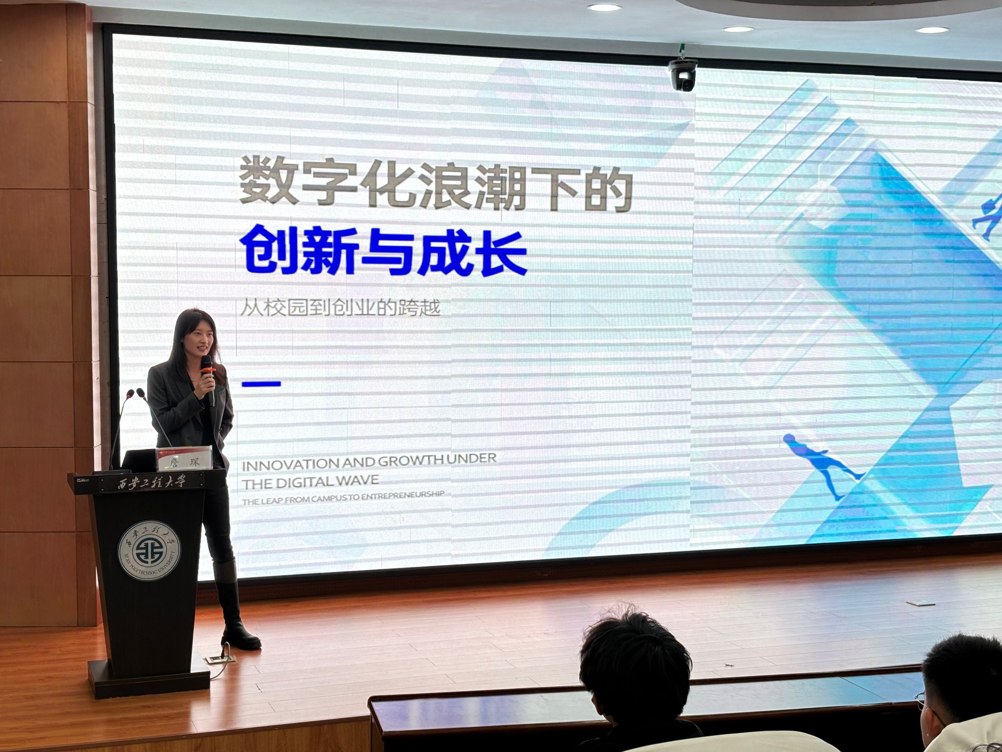 报告会上,詹琛回忆了自己在母校的学习时光,感恩母校的悉心栽培。她结合自身的校园经历和创业历程,与师生们分享了数字化浪潮下如何抓住机遇、勇于创新的宝贵经验。她鼓励同学们要敢于创业,正视风险,保持开放心态,勇于尝试新事物,并付诸实践,将梦想转变为现实。詹琛还就创业、职业规划等方面的问题和同学们进行了互动交流。