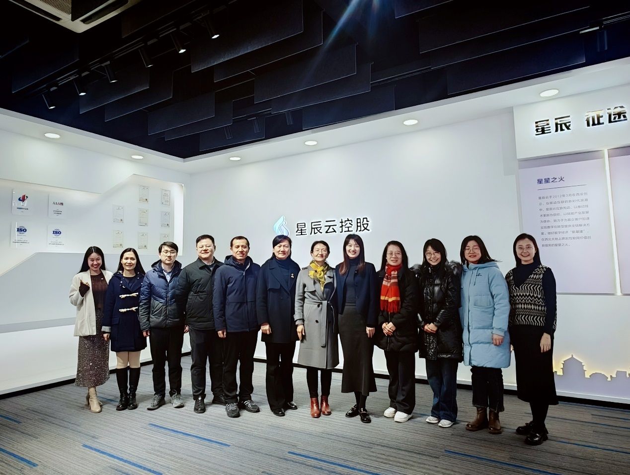 1月14日下午,管理公司党委书记王爱华、经理张克英、党委副书记代锴、副经理陈恒及各系相关负责人王小红、杨静、王纯子、马冰、邵鹏等一行走访了星辰云控股有限公司,看望员工、访企拓岗,洽谈校企合作事宜。