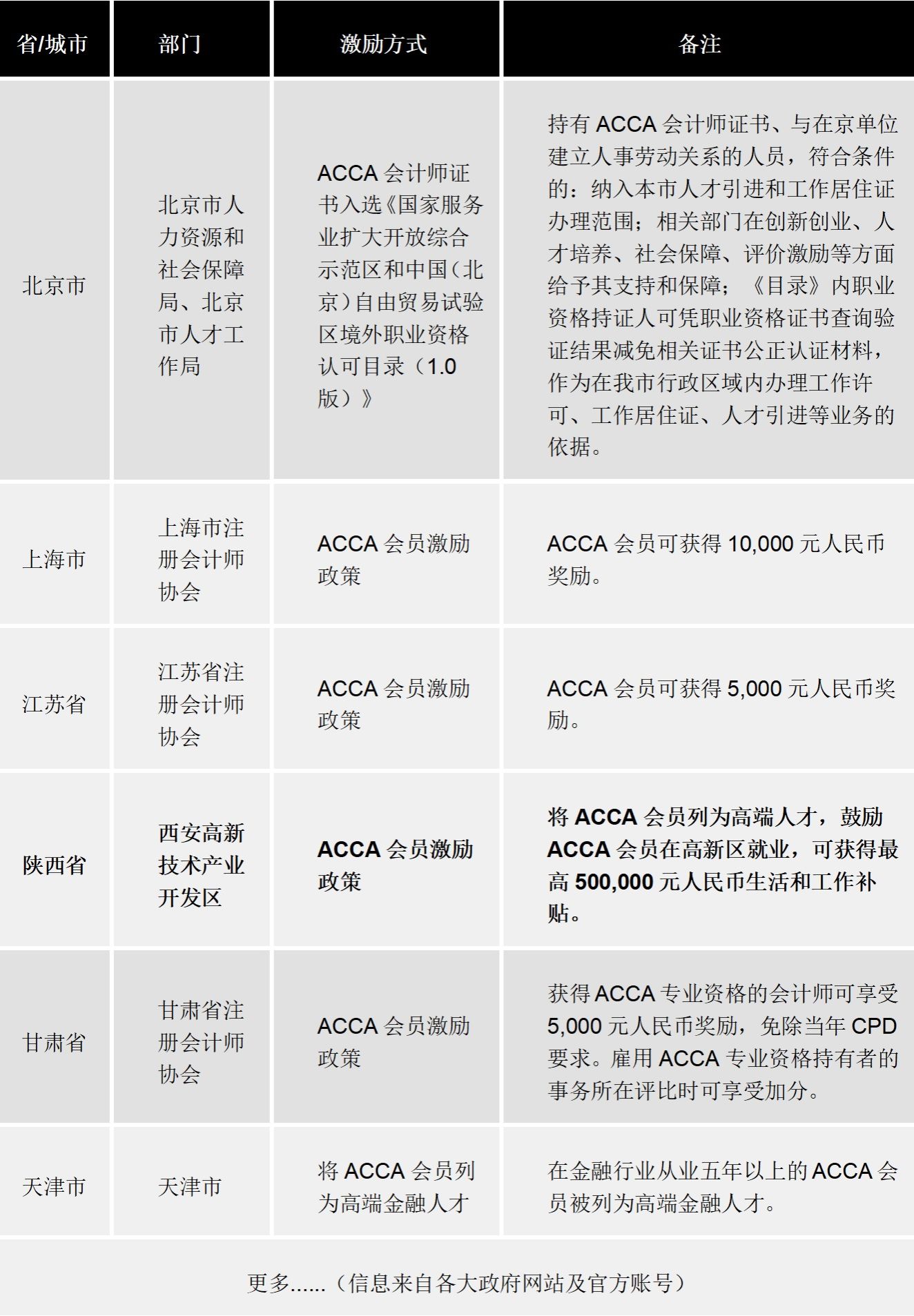(二)ACCA关于城市补助政策(部分)