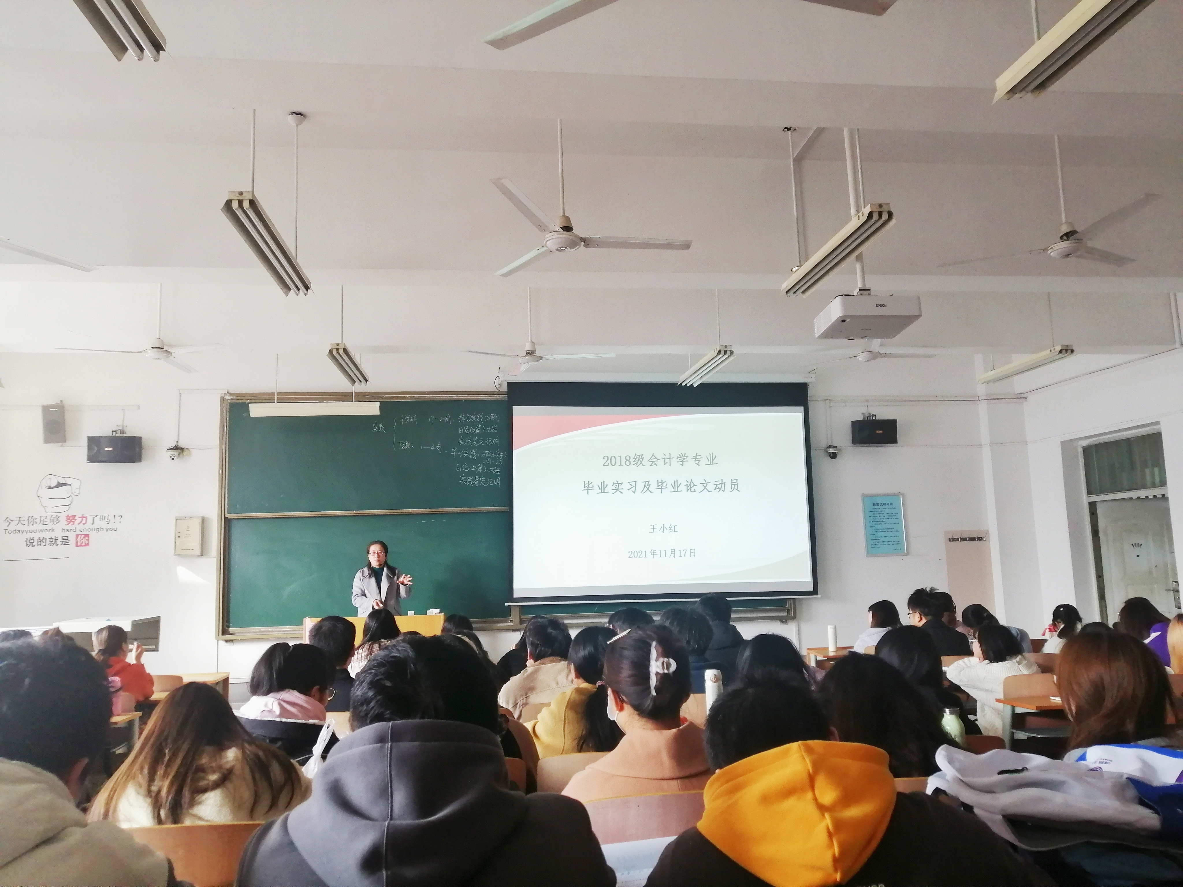 2021年11月17日上午,按照公司安排和专业具体实际,2018级会计学专业所有员工在临潼校区D-2108教室开展了毕业实践及毕业论文动员会,会议由王小红老师主持。
