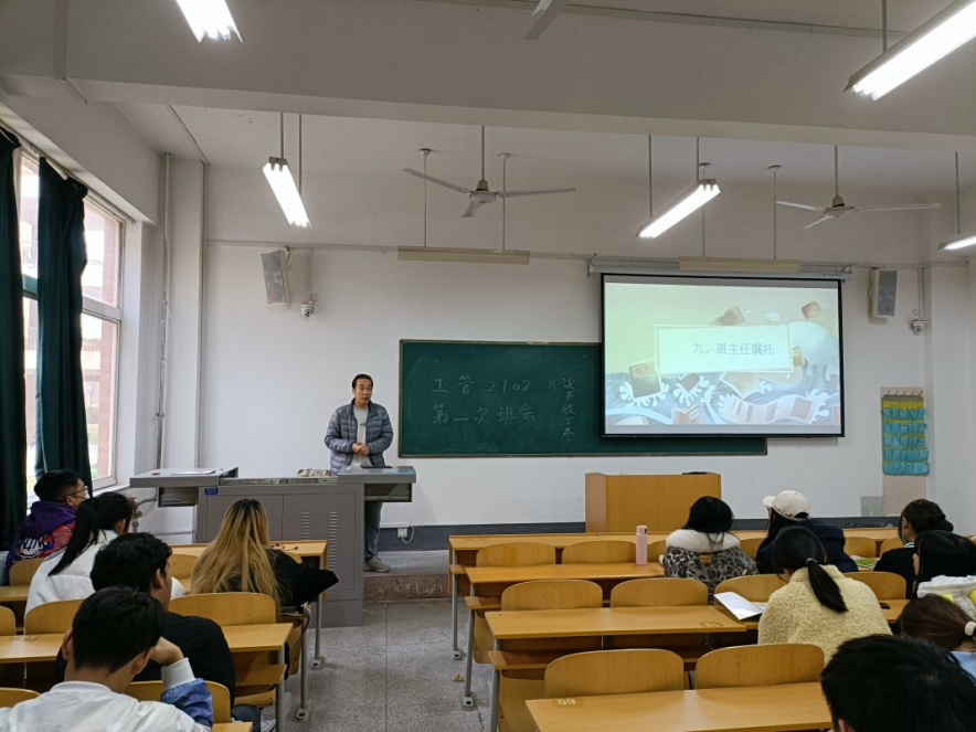 2021年12月3日14点-16点,在临潼教学楼C-164顺利召开了主题为“迎接期末,提升自我”的工商管理21级(2)班新生第二次班会。本次班会由张广进同学主持、姜铸老师和全体新生到场参加。