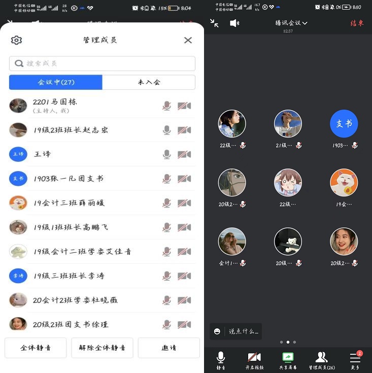 即使我们再努力,也挡不住时间的脚步,纵使我们坚定不移,依旧挡不住岁月的流逝,不知不觉中这学期已经过去了一半了。为了更好地了解同学们在开学以来的学习和生活情况,2023年4月21日晚上8点,在会计系王译老师的带领下,举行了员工线上座谈会议。会议主要内容包括公司的软硬件设施、对任课老师授课时的要求和建议等。参与者包括各年级班长、团支书和学习委员。在会议中,各年级代表积极表达了自己的意见和需要改进的方面。