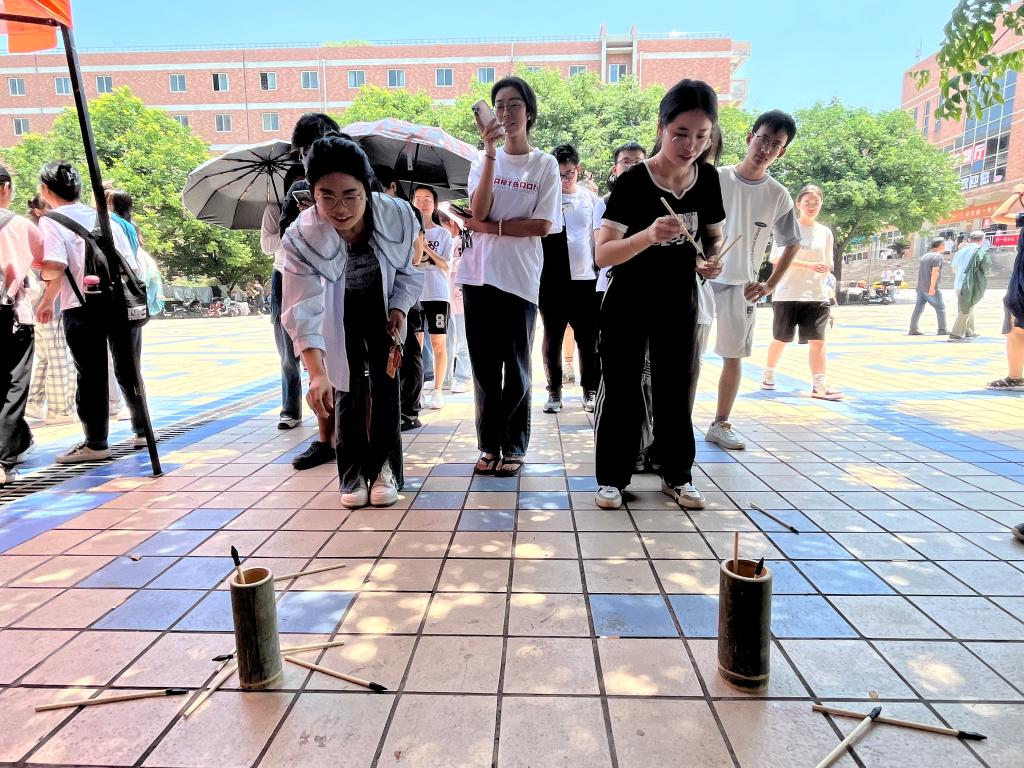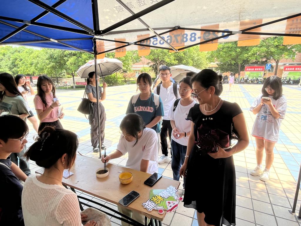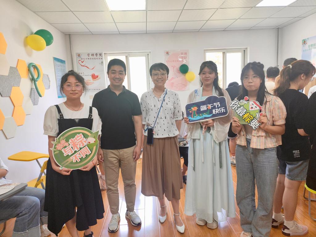 21日中午,临潼校区中心广场及3号员工公寓员工社区内人头攒动,公司举办的“仲夏萦香,'粽'享时光”端午文化节系列活动正在进行。中心广场游戏区正在进行“诗词飞花令”“趣味投壶”和“巧手夹红豆”等活动,“趣味投壶”活动吸引了众多员工的目光,参与活动的员工在游戏过程中热情高涨,欢声不断。“诗词飞花令”活动中,面对不同令词,参赛选手从容不迫,纷纷调动自己的“诗词库存”,积极抢答,在竞答中展现诗词禀赋,激发学习热情,激烈精彩的角逐赢得阵阵掌声。根据游戏规则,通关游戏区项目即可参与3号员工公寓体验区项目。公寓体验区进行的是“艾草香囊制作”“手工拼插龙舟”等活动,不同于游戏区的欢声笑语,体验区显得更加沉稳冷静。员工们一边穿针引线,一边相互探讨,制作出一只只五颜六色的香囊,香囊散发出沁人心脾的药香。同时,经过一番努力,一艘艘造型精美、色彩亮丽的龙舟相继组装成功,员工们在亲身体会中获得关于龙舟的知识,在动手制作中收获快乐。公司党委书记王爱华、副书记代锴,校老员工心理健康教育和咨询中心主任刘蓉、辅导员姚壮应邀到场观摩、指导,全校240余名员工参加活动。