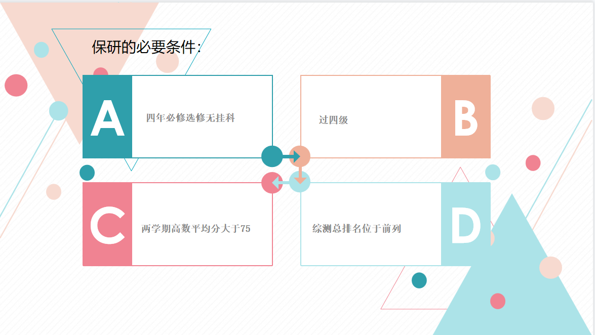 接着作为推免生,邱小洁学姐从自己的学习情况和推免经验两方面向大家进行介绍,她向大家介绍了推免的必要条件,并且以时间节点的形式向大家介绍了推免的整个流程,建议学弟学妹一门心思地往目标奋斗。