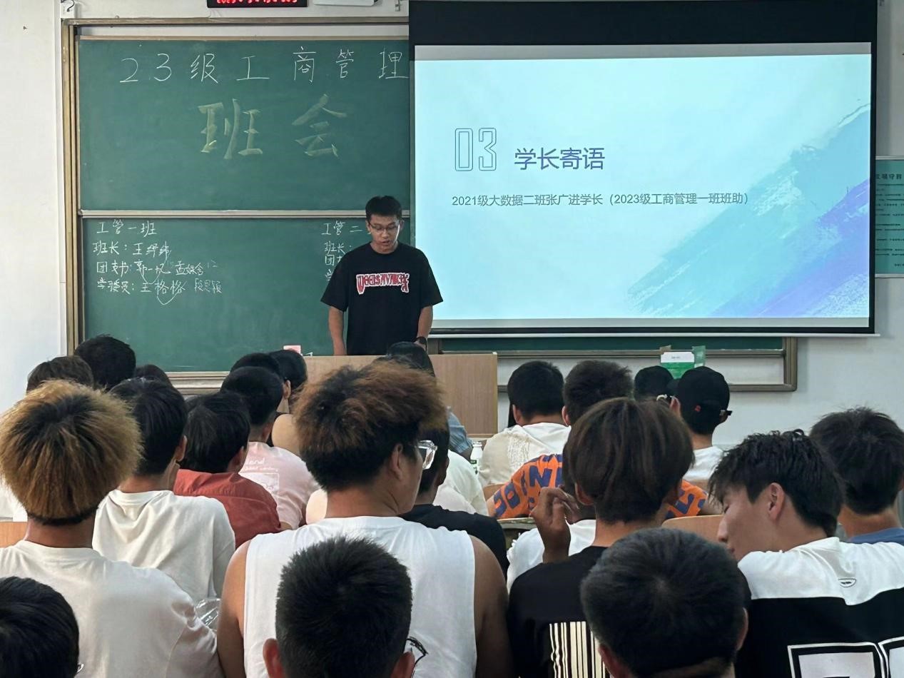 最后,由2023级工商管理二班班助侯洋洋作班会总结,希望通过本次班会,同学们可以快速适应老员工活,找到新目标新方向,铭记恩师嘱托,不忘庄严承诺。(撰稿:李勃、候洋洋、张广进;审核:代锴)