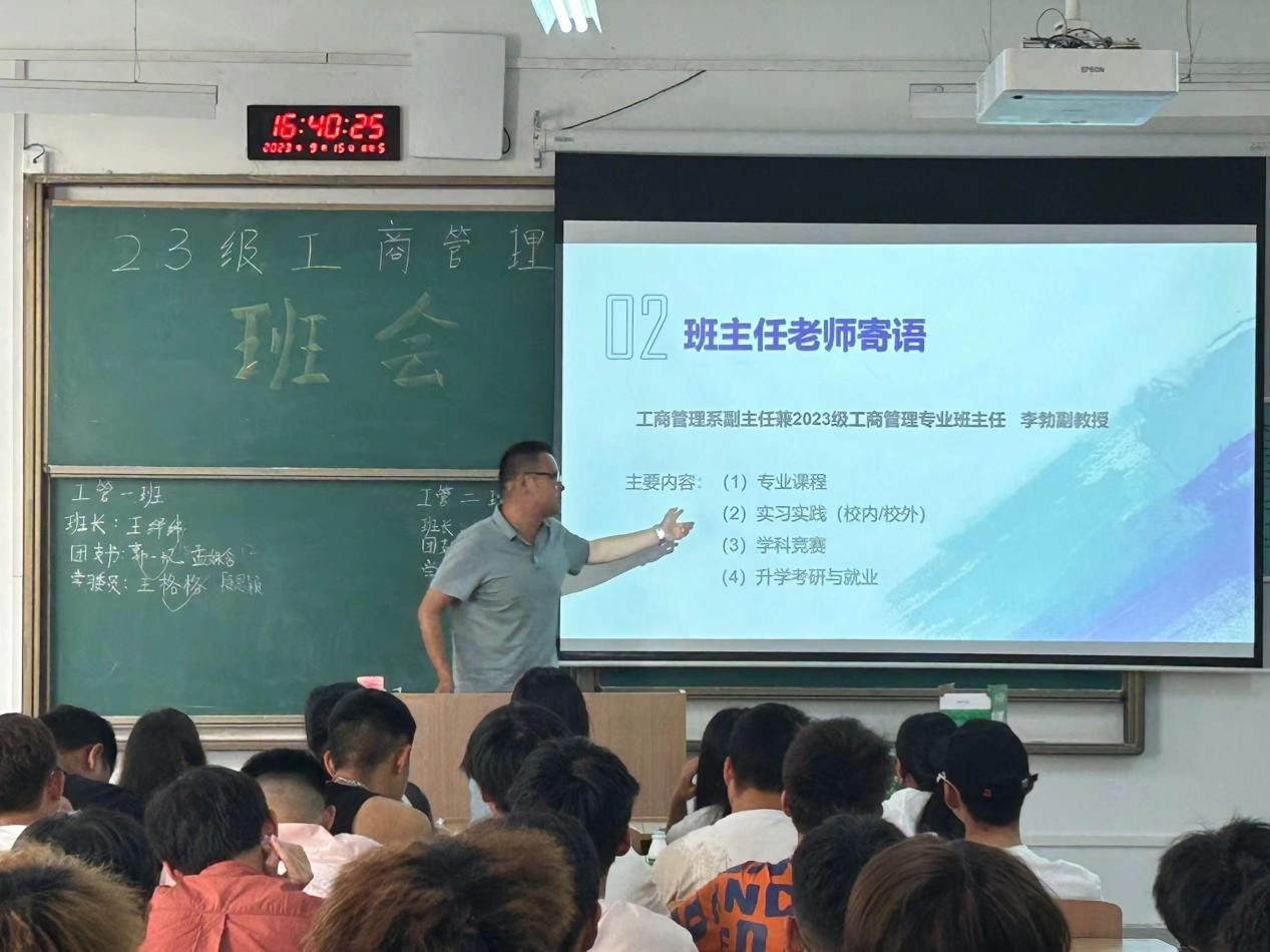 2.学习规划。李勃老师就专业课程、实习实践(校内/校外)、学科竞赛和升学考研与就业四个方面为专业同学的老员工活做了整体规划。李勃老师指出,工商管理专业毕业生就业与升学考研竞争激烈,叮嘱在新生应该认真学习专业课程,扎实基础,多参加校内外实习实践和学科竞赛,增强自己的核心竞争力能力。