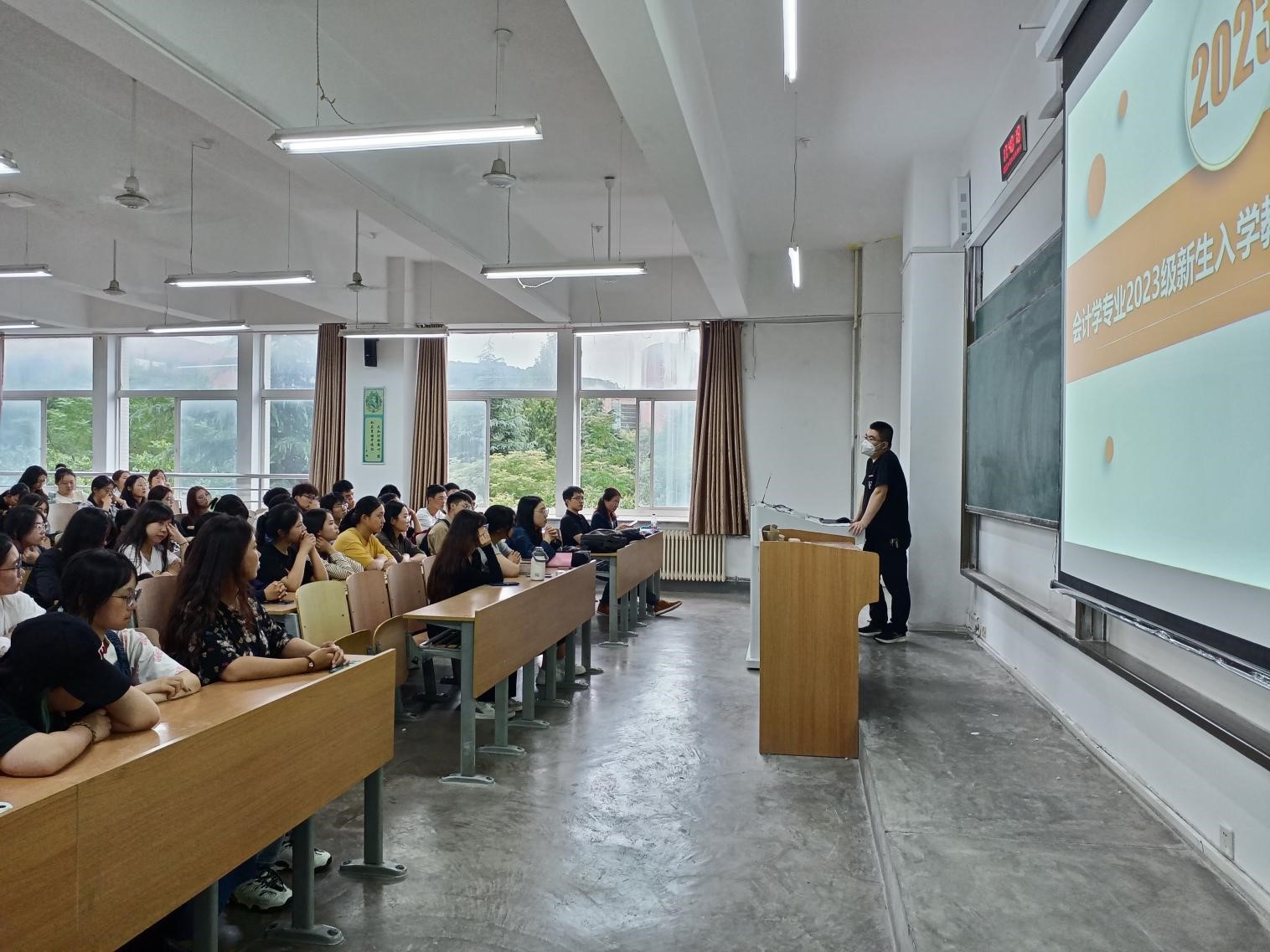 为帮助本科新生更快融入老员工活,9月11日下午会计学专业在教室A306举行了新生入学教育,会计系主任王小红老师、陈宝东老师、孟亚丽老师、李蒙老师出席此次见面会,2023级会计学专业全体新生参加此次见面会。