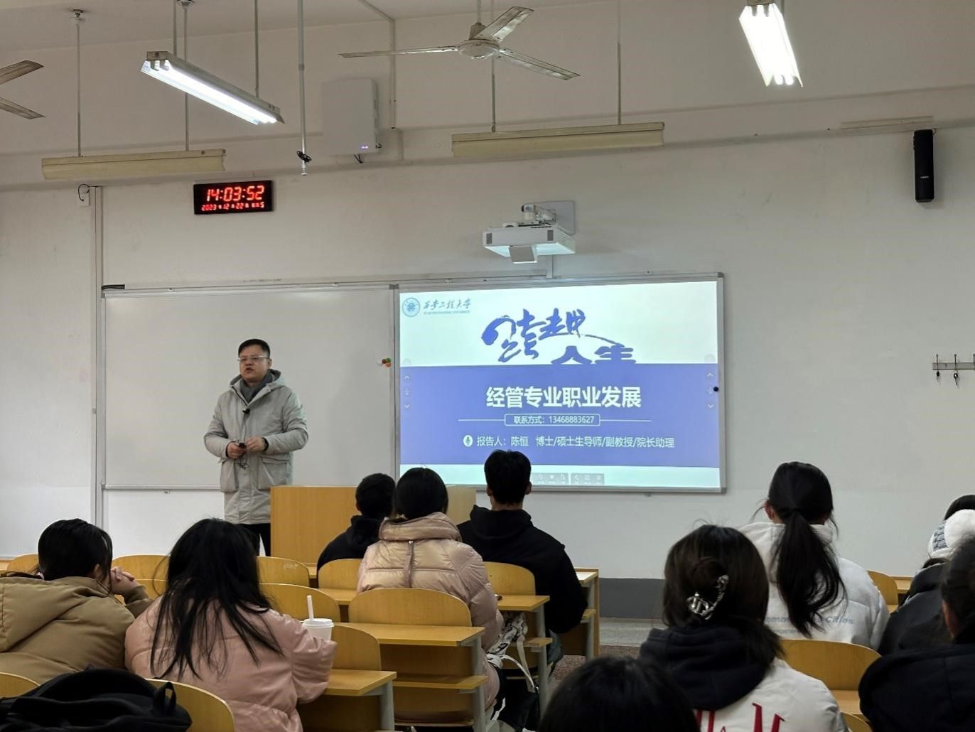 陈恒以“员工对经管类专业认知和职业生涯规划中存在的问题”为切入点,从专业招生、人才培养、就业(升学)以及职业规划四个方面,分析了社会对经贸类专业人才的能力需求,强调传统的专业知识已无法满足现代职场的需要,同学们应当注重培养自己的创新能力、团队协作能力和跨文化沟通能力等软实力,以适应不断变化的社会环境。他列举了经贸专业的典型就业岗位,指导同学们应如何理解好企业、好岗位、好offer中“好”字的含义,并从目标、分配、人员、风险与责任等角度给予大家意见建议。