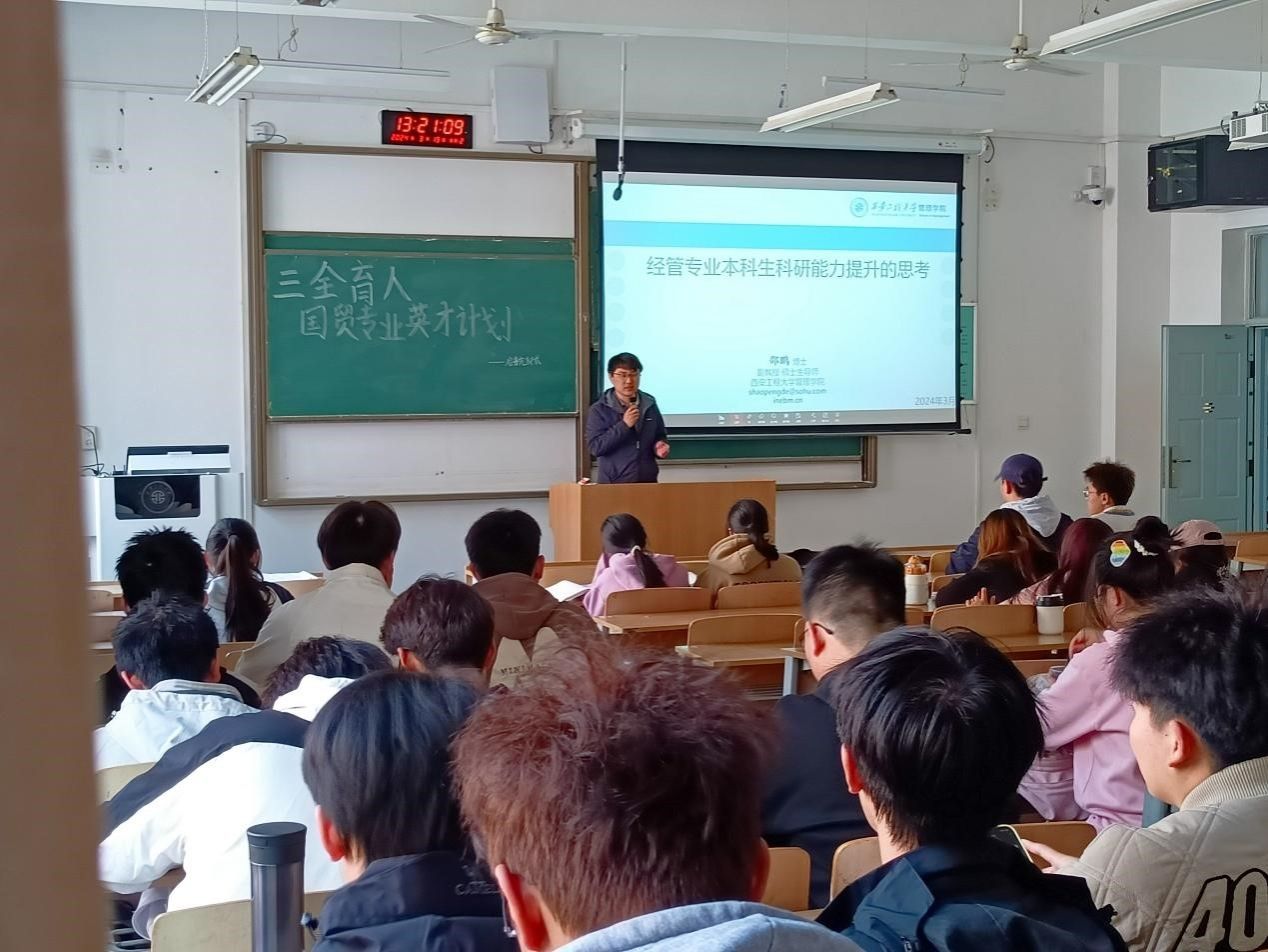 2024年3月19日中午,国际经济与贸易专业举办“英才计划”启航讲座,国际经济与贸易专业“英才计划”员工及23级全体员工和参加。经贸系邵鹏老师围绕“科研能力的提升与思考”为主题,为同学们参与英才计划答疑解惑。