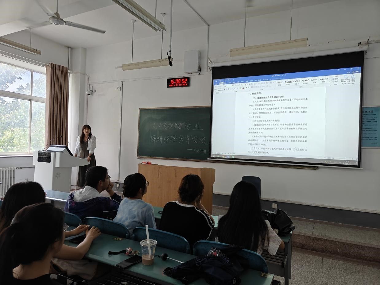2024年6月12日,尹方敏、张芷叶及人力资源管理专业有考研意向的同学在临潼校区C342教室召开了保研经验分享会。会议由尹方敏、张芷叶主持。