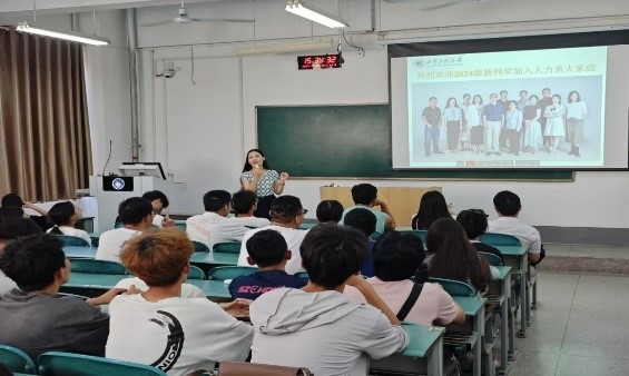 2024年9月18日,为让新生全面了解人力资源管理专业,尽快适应校园生活,明确学习目标,规划未来人生,人力资源管理系召开了2024级新生见面暨专业介绍会。系主任马冰、班主任郑煜、陈钰瑶等三位教师以及2024级人力资源全体新生参加了会议。