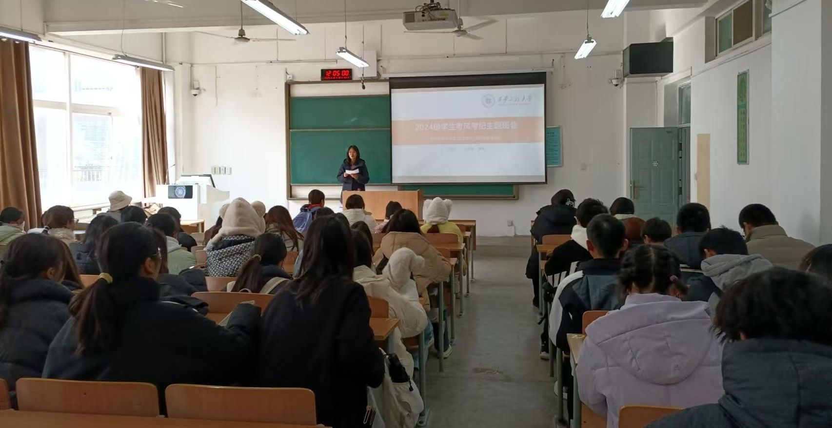 2024年12月19日,威廉体育williamhill会计系“三全育人”导师团在临潼校区A-330召开了考风考纪主题班会活动,旨在引导员工正确认识期末考试的重要性,掌握科学有效的复习方法,营造良好的考风考纪氛围。会计学专业2024级全体同学和班主任杨欢、任思春一起参加了本次活动,会议由杨欢主持。