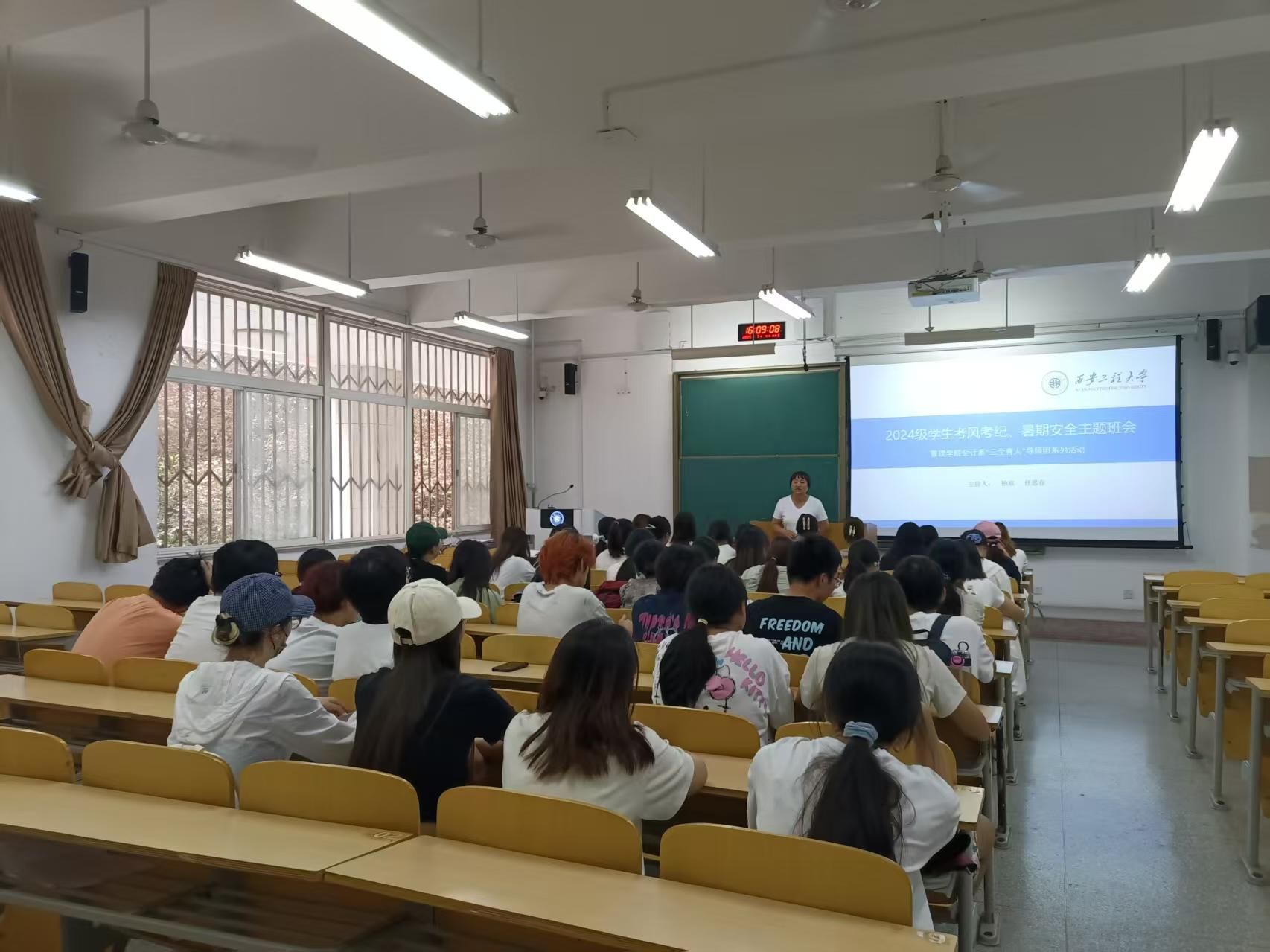 2025年7月4日,2024级会计学专业1班、2班在D184教室举行了考风考纪及假期安全主题班会。班主任杨欢、任思春老师与同学们进行了深入的交流和讨论,针对同学们期末考试、学习情况和暑假安全事宜进行了全面指导。