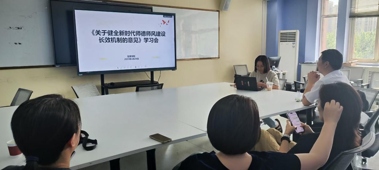 会议的第一项议程是学习“关于健全新时代师德师风建设长效机制的意见”。丁冬带领全体教师认真学习了文件精神,强调师德师风建设是教师队伍建设的核心内容,对于落实立德树人根本任务具有重要意义。