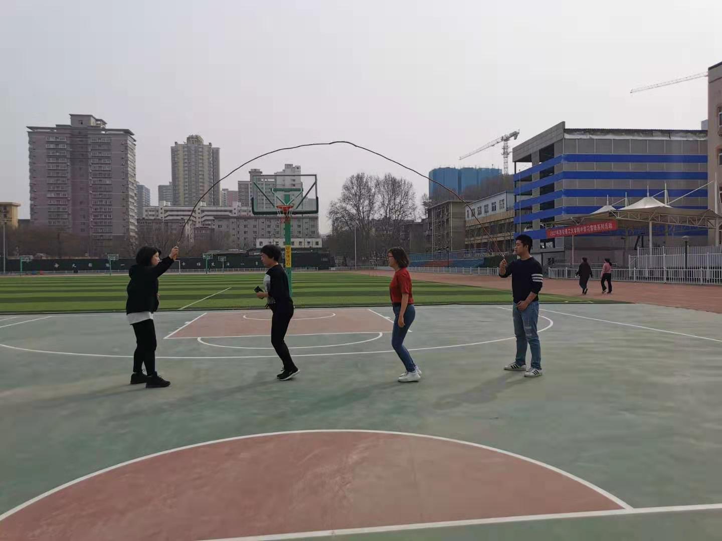 老师们沐浴在阳光中并肩健步走,谈天说地、欢声笑语;在青草地上比拼平板撑,谁都不服输,谁都不放弃。跳绳活动中,看谁跳得多、跳得快,看谁跳得花样多。踢毽子活动中,正着踢、反着踢,跳起来踢,互相接力踢。精彩的摇大绳活动中,相互配合默契,最好的成绩记录一次次被打破,欢呼声不断。男教工为大家奉上了异常精彩的篮球比赛,默契的传球、精准的投篮、漂亮的运球、坚固的防守,奋力的抢篮板,引起在场教职工的赞叹和喝彩。
