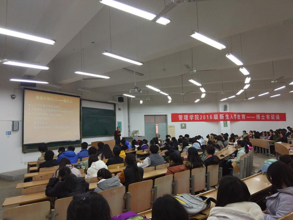 11月28日下午,2016级新生入学教育之“博士有话说”在临潼校区B133精彩开讲,马贵梅博士做了题为“最好的年华做最好的自己”的主题讲座。辅导员吴昌敏以及300多名大一新生参加了本次讲座,讲座由吴昌敏主持。