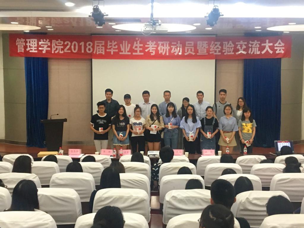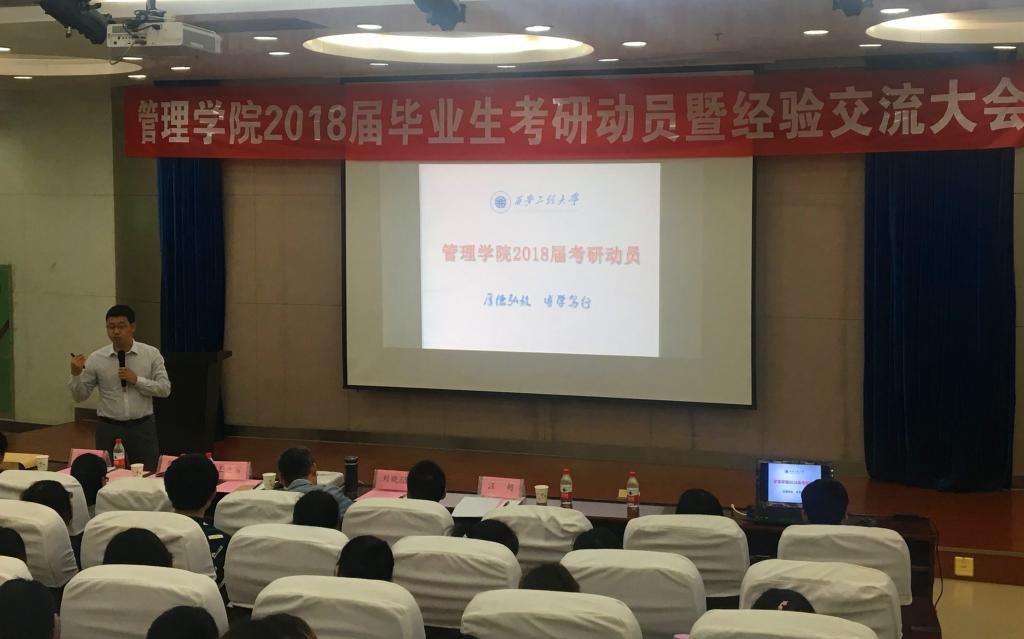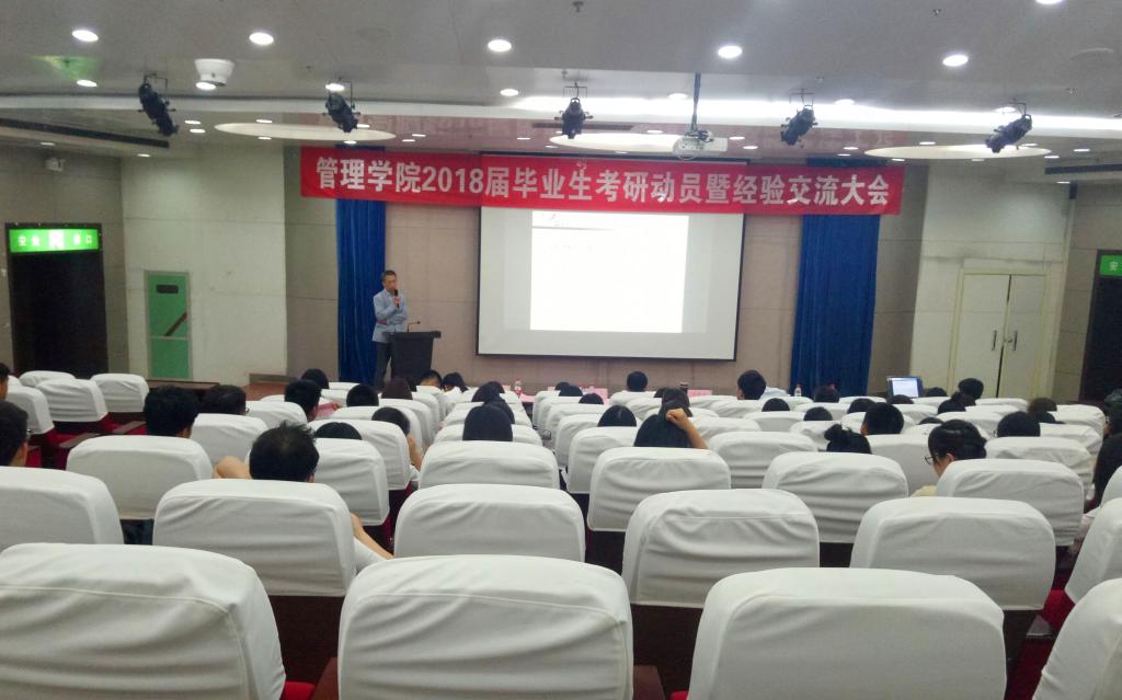 5月18日晚7点,2018届毕业生考研动员暨经验交流大会在临潼校区图书馆一楼报告厅举行。研究生部主任刘晓喆、威廉体育williamhill经理王进富、副经理李艳、党委副书记张冬梅、研究生部招生办公室主任汪超、2017届部分考研成功同学及2014级100多名员工参加了动员大会,会议由张冬梅主持。