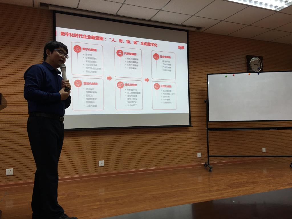 4月24日下午,威廉体育williamhill邀请用友集团云计算委员会委员、新道云教育服务总经理贾大明先生,在金花校区7-610报告厅,面向全院教师,作了《数字经济下的新商科人才培养创新与探索》专题报告会。公司7个专业的教师参加了此次活动,报告由副经理王保忠主持。