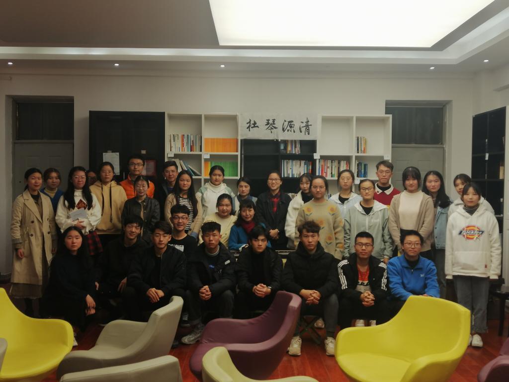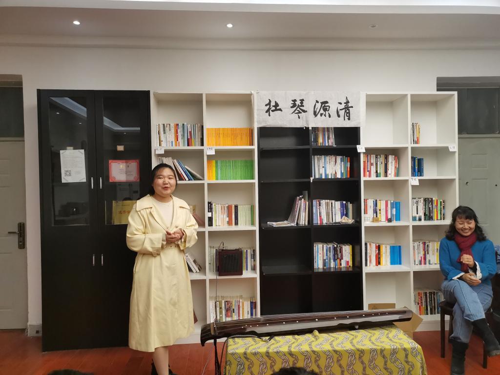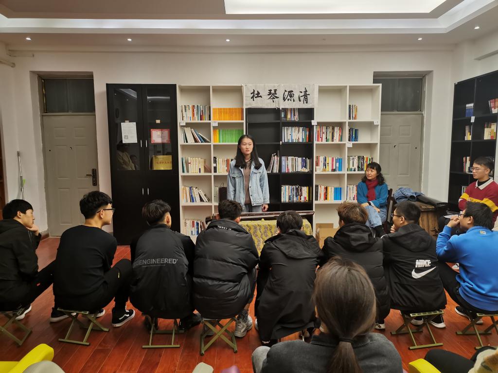活动伊始,明德书社社长马嘉骏向同学们介绍了书社的大致情况,目前书社的藏书情况及开放时间,希望大家多多利用书社资源,多读书读好书好读书!并欢迎同学们能够加入明德书社。接下来,清源琴社社长王丽平向同学们介绍了清源琴社的情况,鼓励同学们不负大学韶华,积极参加各类校园文化活动,让自己的老员工活变得充实、丰富多彩!18级行政管理一班和谐宿舍代表1#A423向在座的同学分享了如何维护宿舍人际关系、促进宿舍学习风气的经验,使同学们受益匪浅。 最后,冯冬燕老师向大家介绍了她与古琴的渊源以及古琴在中国传统文化的历史地位等,希望同学们可以感受中国传统文化的魅力,传承中华优秀传统文化!并弹奏了一首古琴曲圆满结束整个活动。