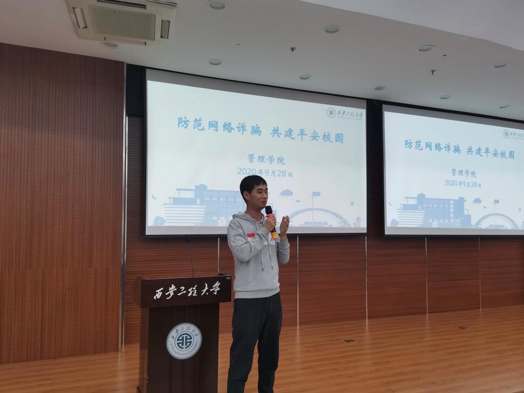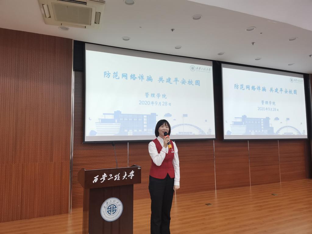 为进一步加大校园防诈骗宣传力度,普及网络安全知识,增强防范意识,营造平安和谐的校园环境,9月28日下午,威廉体育williamhill在临潼校区图书馆二楼报告厅举办了“防范网络诈骗,共建平安校园”安全教育专题活动。此次活动联合中信银行朱雀南路支行、中信银行西安分行零售银行部、运营管理部和信用卡中心共同组织,陕西省银保监局消保处全程参与,2020级180余名新生参加此次活动,活动由辅导员吴昌敏老师主持。