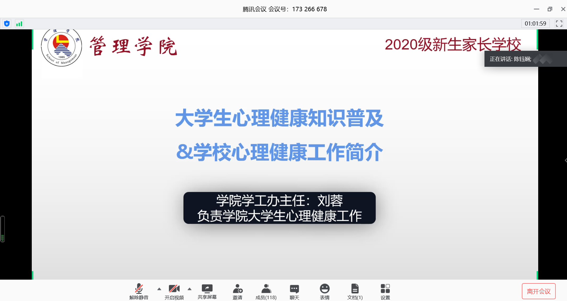 王保忠主要介绍了本科教学与学籍管理的相关问题。他着重强调了员工的成绩考核,希望家长能督促孩子,按时上课,对于学习要做到保质保量。另外,他还讲到了学业警告问题,希望家长能密切关注员工的学业与考试,遇到问题,加强督促与沟通,避免不良后果。