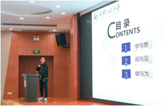 接着,三位优秀研究生代表分别进行了主旨发言。首先,潘毅以研究生生活的回顾、思考与展望为题进行经验分享,他结合自身发表CSSCI论文的经历,详细介绍了学术论文撰写的一般过程和技巧,提出发表一篇优秀论文不仅需要创新点,还需要反复整理和修改,并告诫研一、研二同学做好研究生学术生涯规划。然后,杨青云以“一个人的心路历程——蜕变”为主题分别从个人经历、文献阅读、论文撰写和个人总结四个方面指出科研训练是一个循序渐进、稳扎稳打的过程,需要大量的文献阅读,才能从量变达到质变,并强调科研没有捷径,态度决定一切,细节决定成败,要相信自己。最后,牛一凡将自己的经验分为“学与思”、“闻与见”、“做与为”三个方面,向在座同学介绍了研究生与本科阶段的差异,提出研究生时间宝贵,希望大家且行且珍惜,同时强调了思想交流和数据处理能力对科研工作的重要性,并告诫研一研二同学要尽早确定目标,做好论文选题。