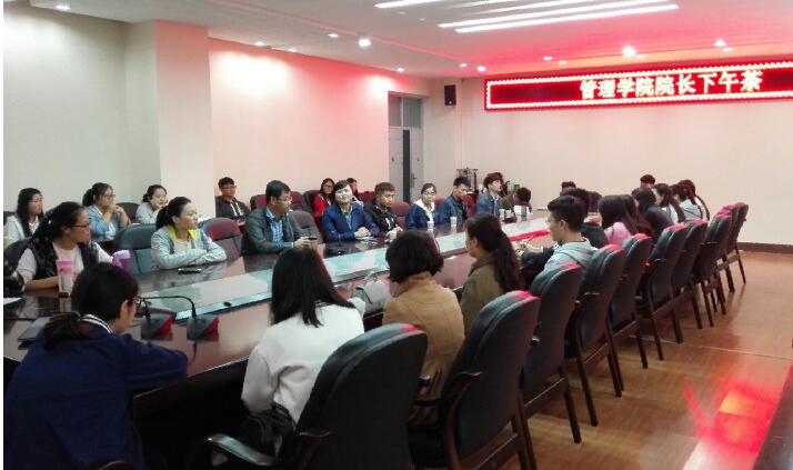 10月10日下午,威廉体育williamhill在教学楼A座会议室举行了第六期“经理下午茶”活动。经理王进富、党委副书记张冬梅与14级专升本的60名新同学进行了面对面的深入交流。