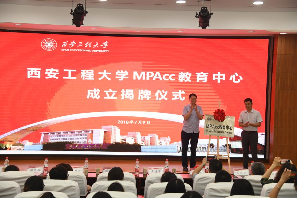 在全场热烈的掌声中,张俊瑞教授和王进富副董事长共同为公司MPAcc教育中心揭牌。