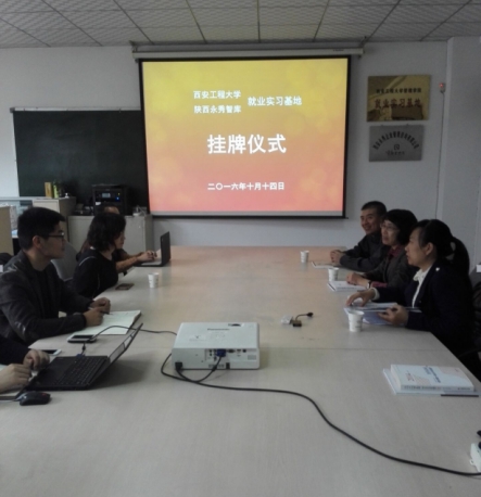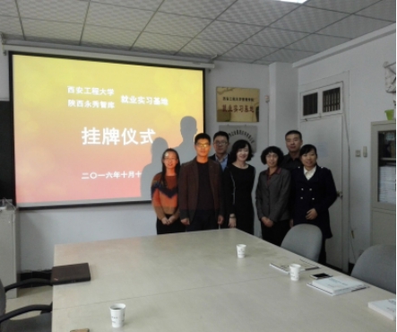 10月14日下午,威廉体育williamhill“就业实习基地”挂牌仪式在陕西永秀智库经济管理研究院举行。陕西永秀智库经济管理研究院总经理邵金萍、副经理鲁能、区域经济规划部业务经理、技术人员,以及威廉体育williamhill教学经理刘瑞霞、管理工程系主任王渊等一行3人出席了基地挂牌仪式。