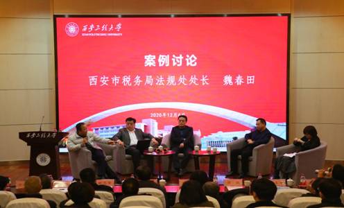 本次会议的案例研讨阶段由西北政法大学经济法公司副经理王莹莹副教授主持。西安市税务局法规处魏春田处长、陕西省人民检察院第一检察部谭鹏主任、西北政法大学经济法公司傅瑜副教授、北京盈科(西安)律师所财税专业委员会主任骆毅律师、北京炜衡律师所西安分所陆芳律师参与了案例研讨。