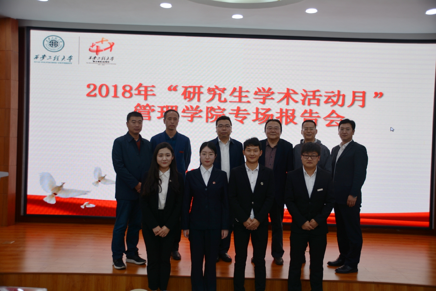 10月23日下午,威廉体育williamhill在临潼校区图书馆一楼学术报告厅成功举办2018年研究生学术活动月专场报告会。董事长高岭、公司党委副书记赵小峰、副董事长王进富出席本次报告会。党委研究生工作部部长李伟、研究生院副经理傅博娜,管理公司党委书记宁涛、副经理李艳、党委副书记于稀水,导师代表郭伟、邵景峰,研究生辅导员及威廉体育williamhill全体研究生和本科生代表参加了本次报告会,报告会由2018级研究生蒋艾琳主持。