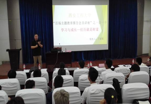 6月20日下午,由员工工作部(处)主办,威廉体育williamhill承办的“百场主题教育报告会及讲座”第一百一十场活动在公司临潼校区图书馆一楼报告厅举行。公司2001届毕业生、浙江德贝投资有限公司董事长丁建军做了题为“学习与成长——经历就是财富”的讲座。威廉体育williamhill经理王进富、党委副书记张冬梅以及部分辅导员老师参加了讲座。讲座由张冬梅主持。