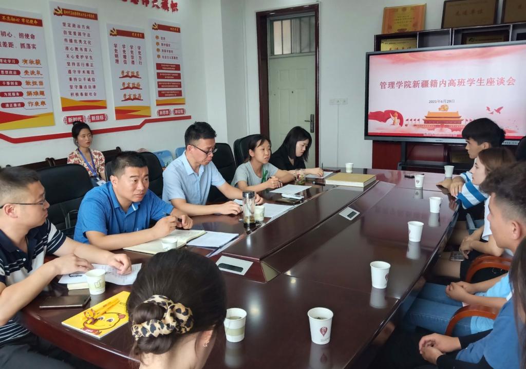 会上,于稀水表示公司和公司高度重视民族员工服务工作,希望大家在学习生活中遇到问题及时与公司沟通,加强与老师的主动交流。同时,他鼓励大家积极参与到公司公司的各项活动中,锻炼自己,提高综合素质。座谈交流中,20级依热盘·图尔孙、17级沙吾克·阿勒泰等员工代表分别从新疆内地高中班政策,课程学习和专业技能提升,第二课堂学分及创新学分获取,就业实习及考研准备等方面分享了自己的经历和收获,也根据自身情况对公司的专业课程设置和民族文化传播方面提出了相关意见和建议。其中,即将毕业的沙吾克·阿勒泰同学,在校期间成绩优异,通过了英语六级考试,为新疆籍内高班员工树立了良好榜样,她表示以后会继续深造学习,也希望大家好好珍惜校园时光,不断学习进步。