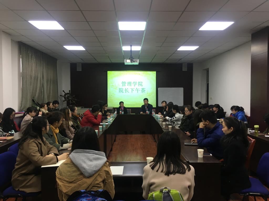 3月15日下午,威廉体育williamhill在人文楼二楼会议室举行了第七期“经理下午茶”活动,经理王进富、副经理李艳、党委副书记张冬梅和2014级60余名同学针对考研相关话题进行了互动交流,活动由张冬梅主持。