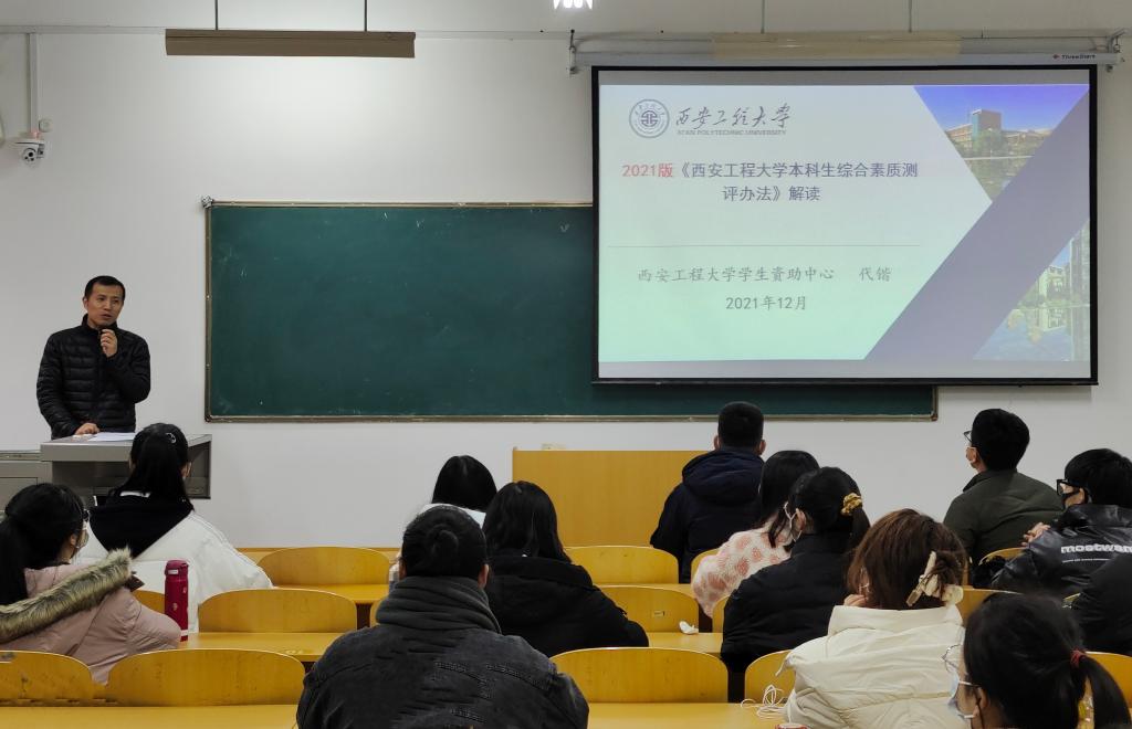 在测评结果运用方面,代锴强调了三点:综合测评记录了大学四年的学习全过程;测评结果是参与各类评奖、评优的量化参考;三次综合测评成绩是推免研究生等重要工作的依据。提问环节,同学们就新综测的部分细节提出疑问,代锴进行了解答。